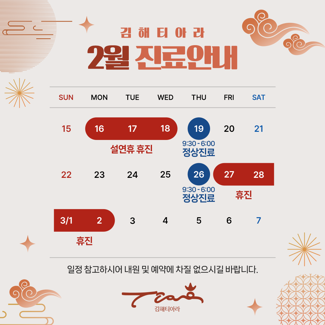 ¡ÚƼ¾Æ¶ó 2¿ù Áø·áÀÏÁ¤ ¾È³»¡Ú