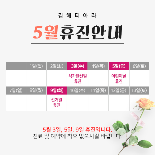 ±èÇØÆ¼¾Æ¶óÀÇ 5¿ù ÈÞÁø¾È³»ÀÔ´Ï´Ù.
